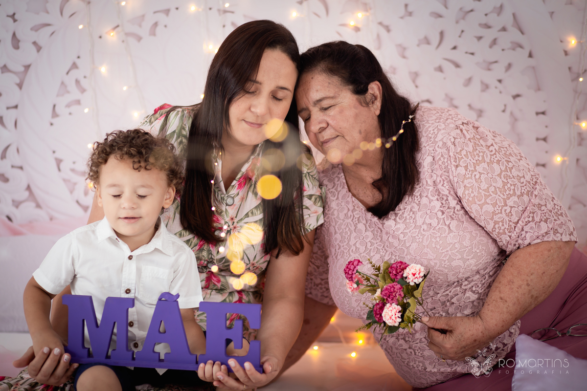 Ensaio do dia das mães da mamãe Raquel, vovó Glória e netinho Miguel ♥